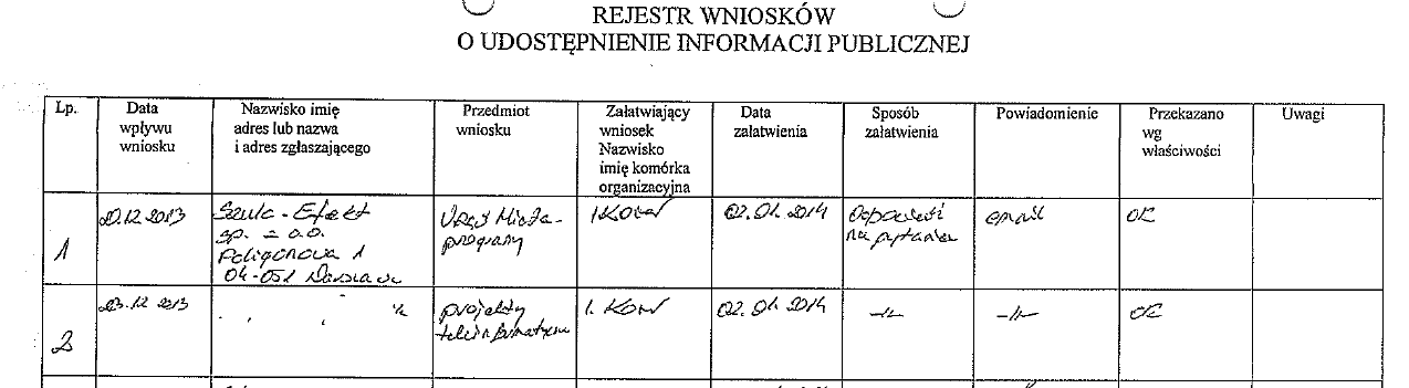 Wygląda na to, że niektóre gminy nie prowadzą zbyt gorliwie swoich rejestrów, ponieważ nie ma w nich śladu po naszych wnioskach, choć na pewno je wysyłaliśmy przy okazji różnych monitoringów. Pytanie, czy wszystkie wnioski są tak wybiórczo rejestrowane.