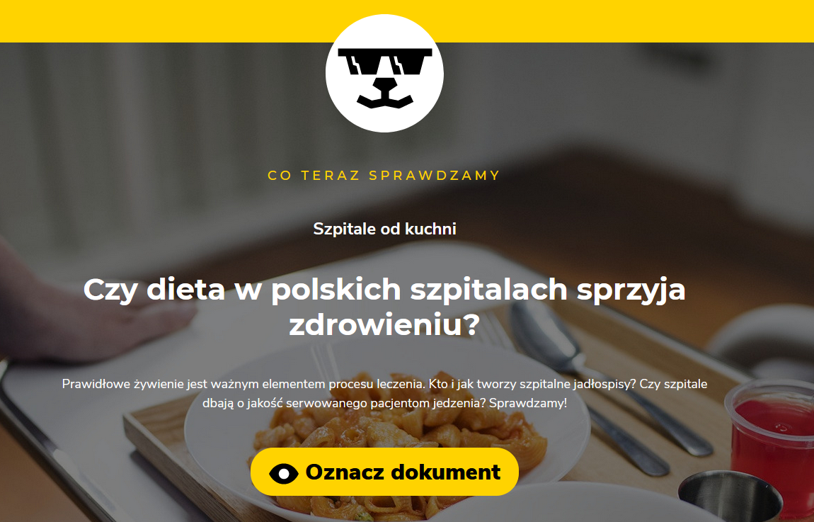 Nasz działający już ponad pół roku projekt pozwala każdemu poświęcić kilka minut na to, by przeanalizować odpowiedzi różnych instytucji na zadane przez nas pytania. W ten sposób możemy, z waszą pomocą, przeanalizować znacznie większe zbiory danych, niż własnymi siłami. Pytaliśmy już między innymi o dostęp do instytucji kulturalnych, zmiany w organizacji sądów, a teraz – bardzo na czasie – pytamy szpitale, jak żywią swoich pacjentów. Ile szpital wydaje na posiłki, czy zatrudnia dietetyka, czy wegetarianin może liczyć na coś więcej niż chleb z pomidorem – sprawdź! Oznaczone dane stanowią dla nas podstawę do tworzenia raportów.