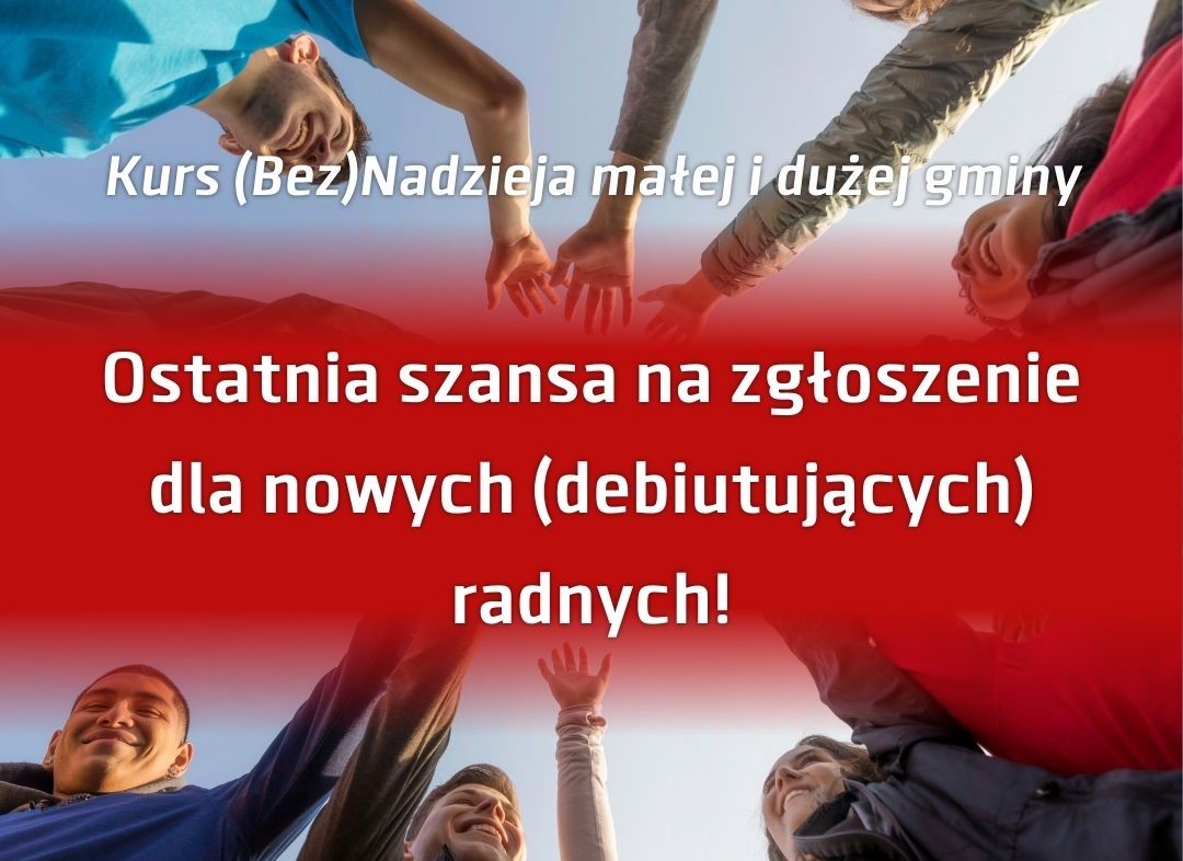 Uwaga: Przedłużamy przyjmowanie zgłoszeń tylko dla nowych radnych (pełniących funkcję radnego/radnej po raz pierwszy). Zainteresowane osoby zapraszamy do zapoznania się z regulaminem uczestnictwa w kursie oraz wypełnienia formularza zgłoszeniowego do 14 kwietnia (do końca dnia, godz. 23.59).