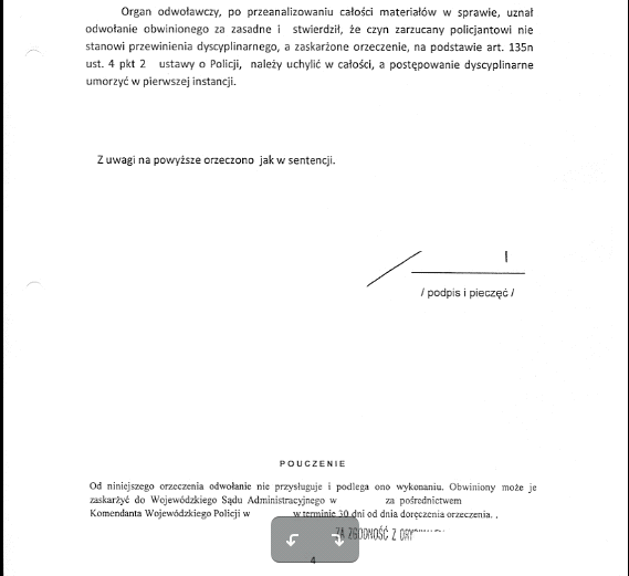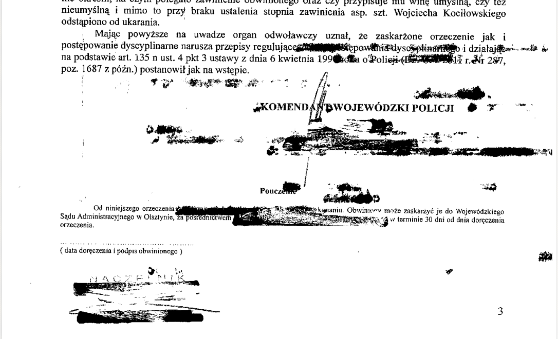 Po ponownym rozpatrzeniu sprawy, Komendant Wojewódzki Policji w Kielcach udostępnił nam żądane informacje bez dokonania anonimizacji, udostępniając personalia policjantów, wobec których wydano orzeczenia dyscyplinarne.