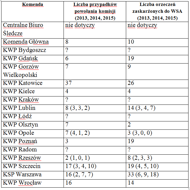 - informacje o tym, w ilu przypadkach w latach 2013-2015 została przez wojewódzkiego komendanta policji powołana komisja do zbadania zaskarżonego orzeczenia,