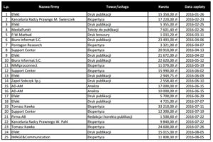 – w oparciu o udostępnione Sieci Obywatelskiej Watchdog Polska zestawienie wydatków z Funduszu Eksperckiego