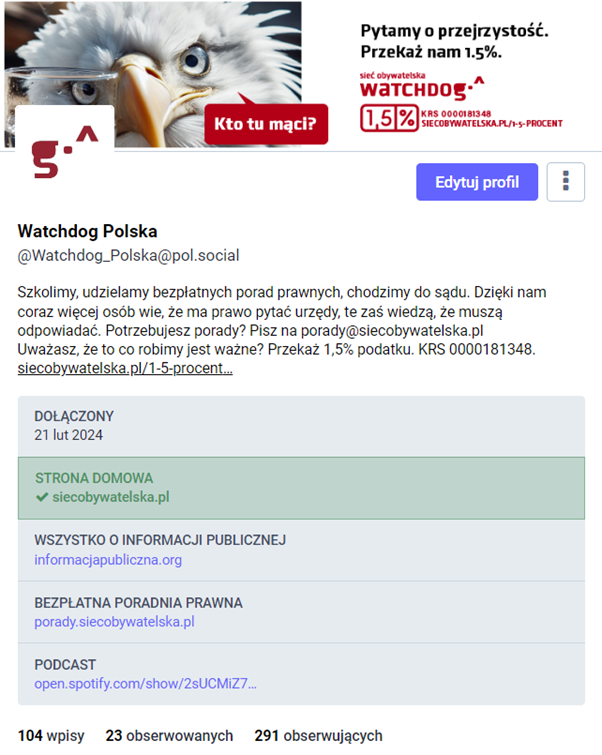 Dołączcie do nas na -> https://pol.social/@Watchdog_Polska
