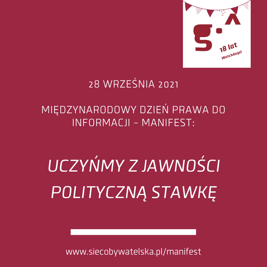 W 2021 roku Sieć Obywatelska Watchdog Polska kończy 18 lat. W tym czasie zmieniały się wyzwania, które stoją przed prawem do informacji. Prawem, na którego straży stoimy.