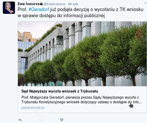 ” Z informacji przekazanych przez dziennikarkę Ewę Ivanova wynika, że Prezes SN wycofa swój wniosek z TK!!!”