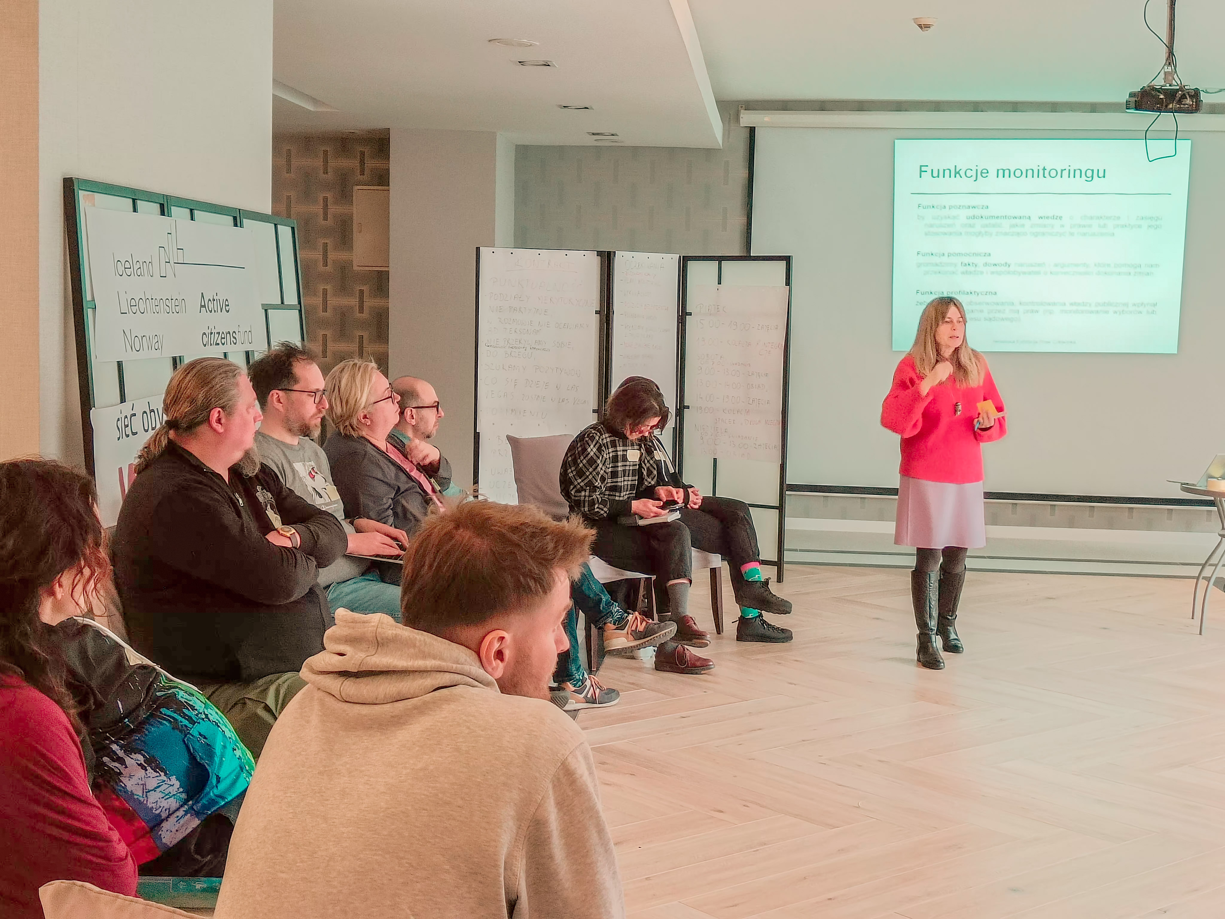 Od piątku do niedzieli grupa pracowała pod okiem dr hab. Edyty Widawskiej, która przedstawiła metodologię prowadzenia monitoringu, zasady planowania działań i techniki zbierania danych. Powstało mnóstwo pomysłów na prowadzenie wspólnych, minimonitoringów. Uczestnicy i uczestniczki wybrali 4 tematy, nad którymi będą pracować przez najbliższe 2 miesiące.