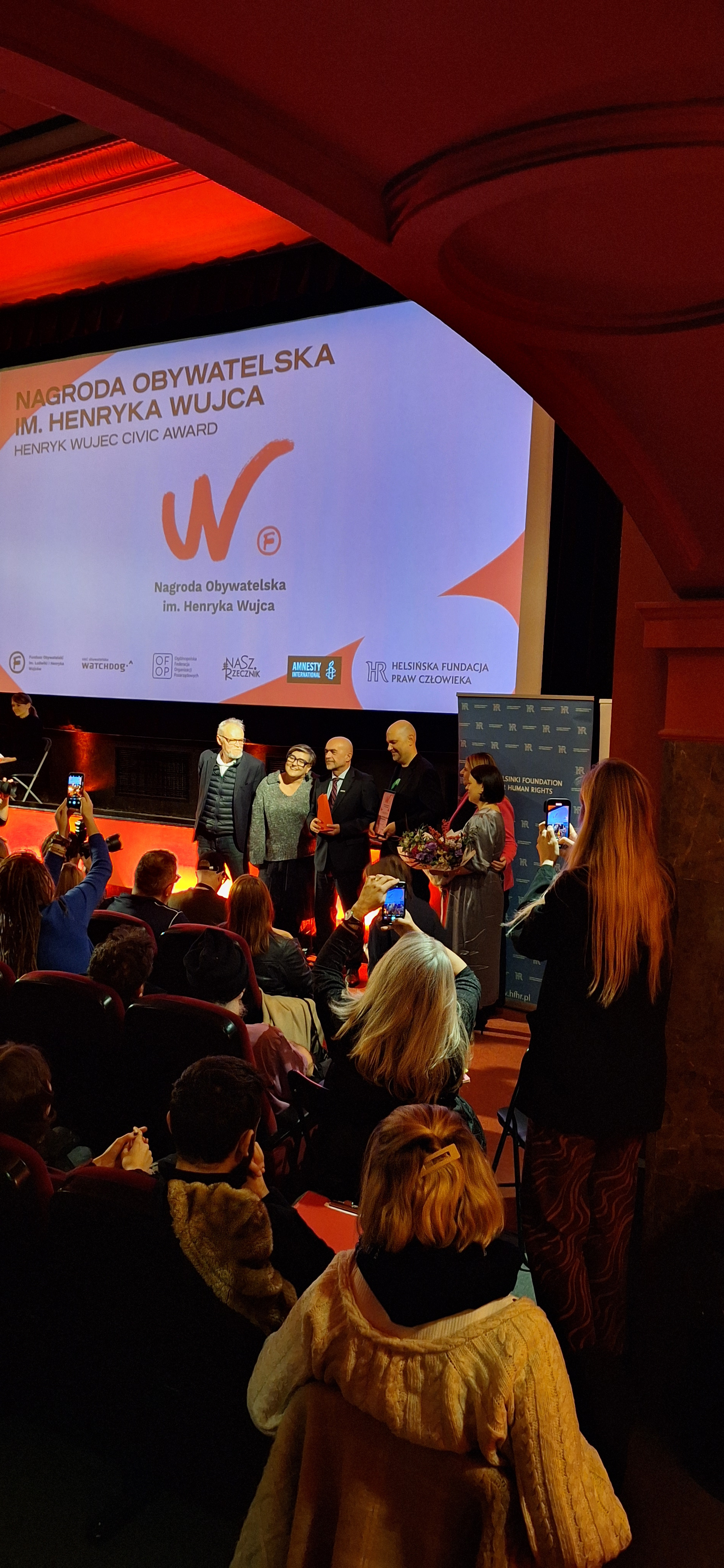 Ale było też o nadziei. I nią jesteśmy właśnie my — obrończynie i obrońcy praw człowieka. Ci, którzy działają pomimo przeciwności i którzy działają w sytuacjach, które wydają się beznadziejne. Szczytowym momentem wydarzenia była gala zakończenia Festiwalu Watch Docs, podczas której nastąpiło wręczenie Nagrody Obywatelskiej im. Henryka Wujca przyznawanej tym, którzy nas wspierają. Tę nagrodę przyznaje kapituła składająca się z przedstawicieli Amnesty International, Fundacji dla Polski/Funduszu im. Ludwiki i Henryka Wujców, Helsińskiej Fundacji Praw Człowieka i Ogólnopolskiej Federacji Organizacji Pozarządowych.