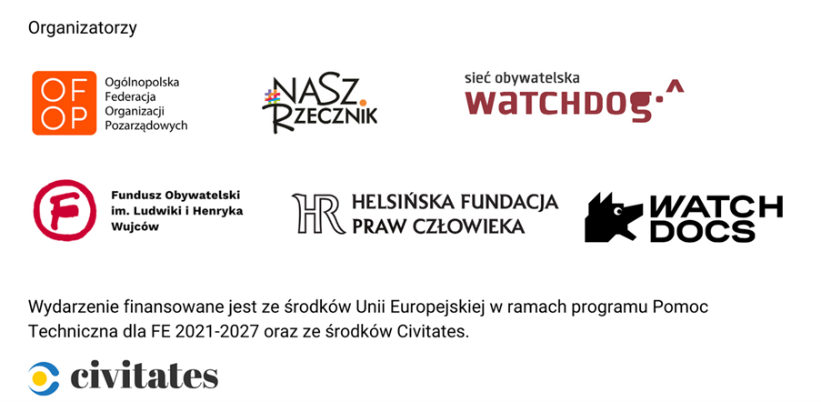 W 2024 roku było nas więcej niż w poprzednich latach. Spotkały się osoby działające w ramach Sieci Obywatelskiej Watchdog Polska i Inicjatywy Nasz Rzecznik, grantobiorcy i grantobiorczynie Funduszu Obywatelskiego im. Ludwiki i Henryka Wujców oraz organizacje społeczne zaproszone przez Ogólnopolską Federację Organizacji Pozarządowych. Wszystkie te grupy spotykały się w wybranych momentach.