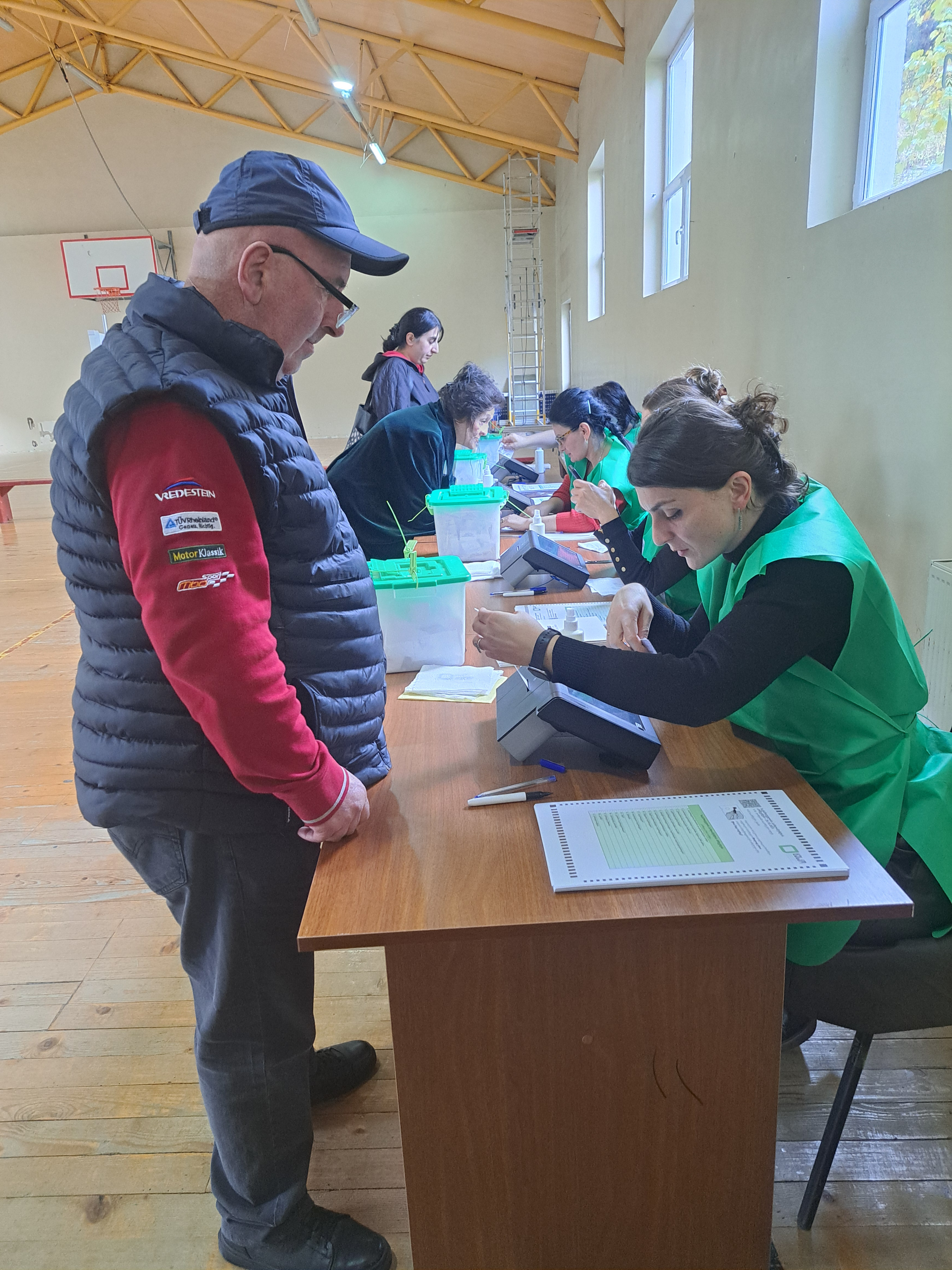 Obserwowaliśmy wybory w małych miejscowościach. Tym, co rzucało się w oczy, zwłaszcza w przedpołudniowym szczycie, były grupki mężczyzn stojących wokół lokali. Trudno nam ocenić, na ile to specyfika kulturowa, a na ile mieli kontrolować sytuację. W jednym wypadku zaobserwowaliśmy minibusa, w którym siedziało kilka dorosłych osób i trzymało jakieś papiery. Trochę jakby załatwiali jakieś sprawy administracyjne. Samochód stał, gdy wchodziliśmy na obserwację i gdy wychodziliśmy po kilkudziesięciu minutach. Wciąż siedziała w nim grupa dorosłych osób. Gdy mu się przyglądaliśmy, ktoś zdjął kartkę przyklejoną do przedniej szyby, ale potem kartka wróciła na swoje miejsce,Pod innym lokalem zaobserwowaliśmy głośną awanturę. Grupy mieszkańców wykrzykiwały do siebie. Mieliśmy wrażenie, że zaraz się pobiją. Wedle rozmów z obserwatorami z opozycji, przyczyną miało być kupowanie głosów. Jedna z osób zaczęła krzyczeć do innej “sprzedałeś kraj za 500 lari!”.