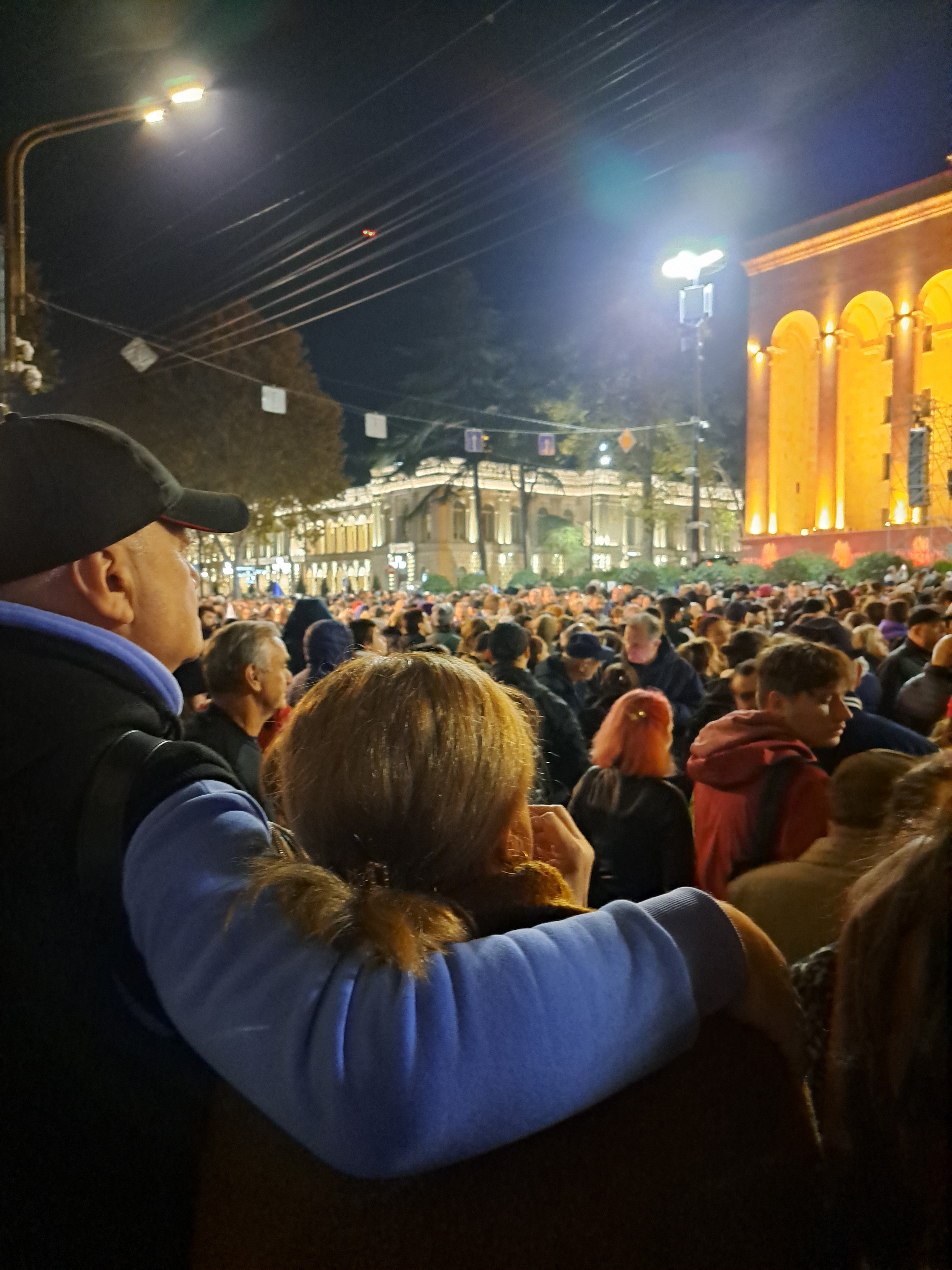 Na wezwanie prezydentki, Salome Zurabiszwili, w poniedziałek na ulice wyszły osoby, które chciały wyrazić swój sprzeciw wobec wyników wyborów. Demonstracja miała pokojowy charakter. Było dużo młodych osób. Powiewały flagi Gruzji i Unii Europejskiej. Prezydentka mówiła o “skradzionych głosach i o tym, że przysięga, że będzie z ludźmi do końca tej drogi, dopóki nie dotrzemy do bram Europy”