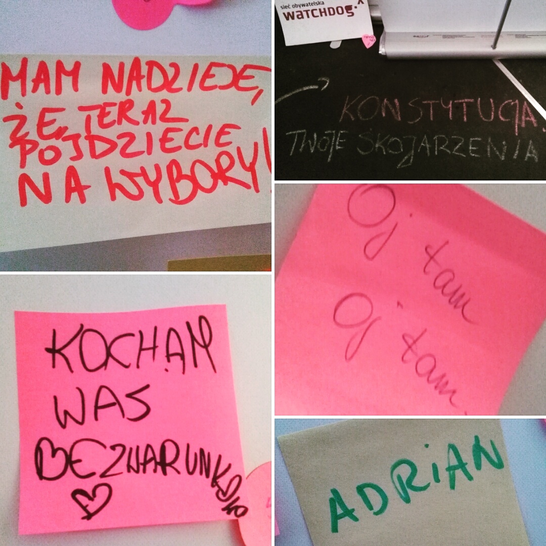 Przez trzy dni na naszym stoisku festiwalowicze tworzyli zina na temat jawności i Open’era. Ostatniego dnia rozdawaliśmy gotową gazetę. Przez cały festiwal na naszej ściance ,,Moja konstytucja” można było dodać swoje skojarzenia i komentarze do naszego najwyższego aktu prawnego. U nas można było też wyrazić się, przygotowując swoją własną filozoficzną flagę. Efekty tych wszystkich działań i zaangażowanie uczestników przeszły nasze najśmielsze oczekiwania. Zerknijcie tylko na zdjęcia i nagrania!