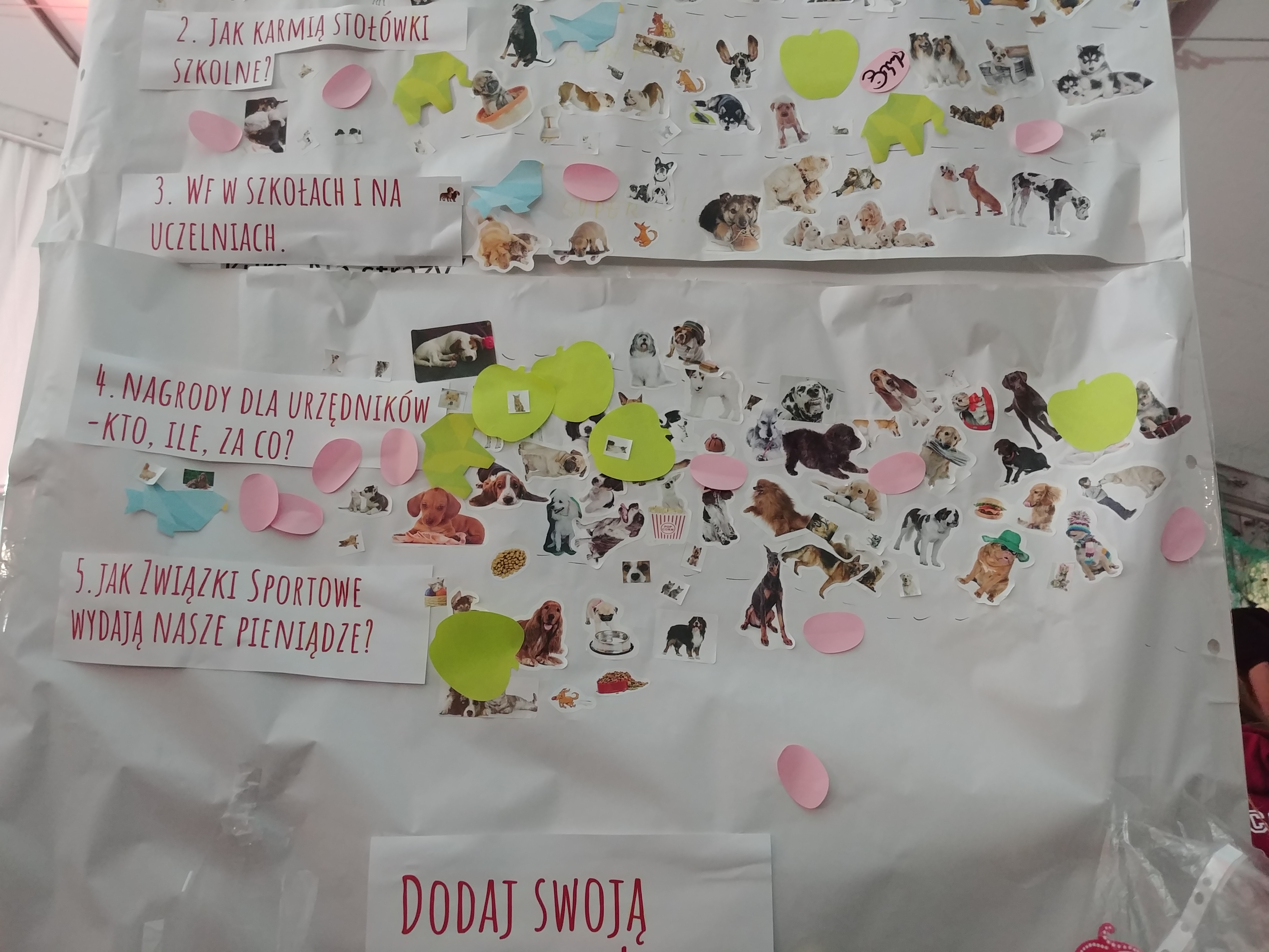 Wiele osób przychodziło na nasze stoisko z czystej ciekawości. Skuszeni psychotestem i psimi tatuażami zostawali na dłużej i chętnie słuchali o naszej działaności. Nie brakowało też śmiesznych sytuacji: pierwszego dnia późnym wieczorem, kiedy namiot pełen był chroniących się przed deszczem ludzi, podeszła do nas na oko 15-letnia dziewczyna i lekko zestresowana, spytała jak może nam pomóc, ponieważ bardzo lubi pieski. Na moją odpowiedź, że pomimo naszej nazwy, zasadniczo nie zajmujemy się pieskami, pokiwała ze zrozumieniem głową i przytaknęła „no tak, innymi zwierzątkami pewnie też”.