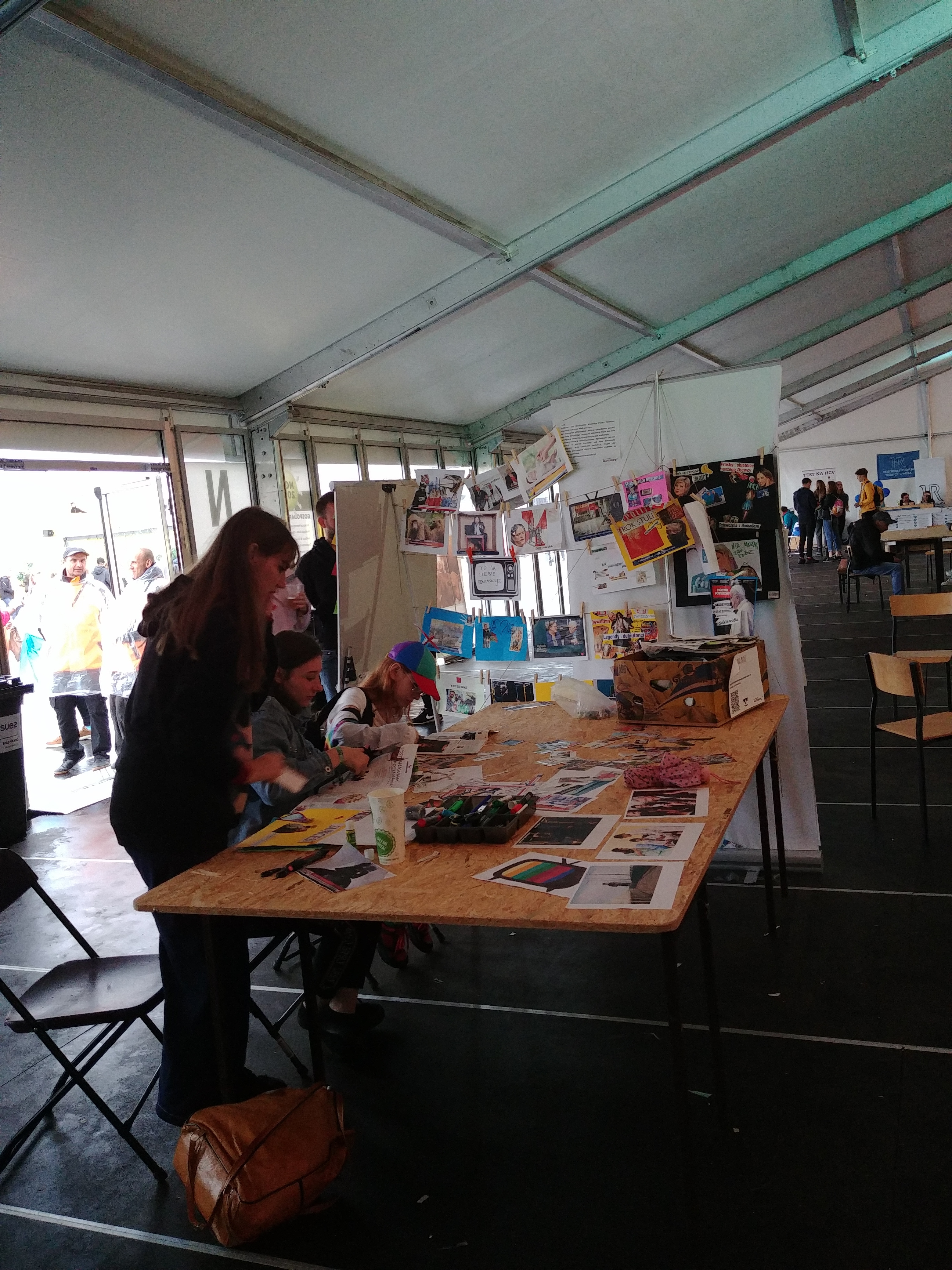 Kiedy lunął deszcz, strefa NGO zaczęła przypominać lotnisko, z którego odwołano wszystkie połączenia. Paskudna aura miała swoje zalety – przemoknięci openerowicze tłumnie brali udział w aktywnościach, tworzyli przemyślane ziny, przychodzili pogawędzić i chociaż miałam wrażenie, że wielu chce się po prostu ogrzać, przynieśli ze sobą mnóstwo energii i nowych pomysłów.