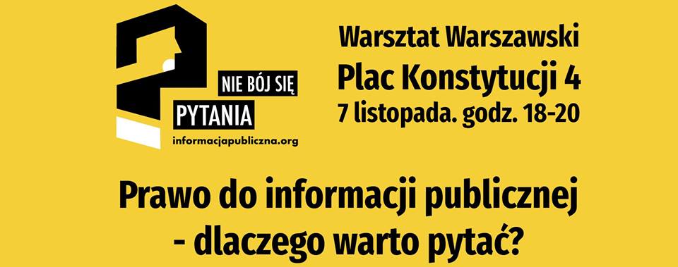 Nie musicie się nigdzie zgłaszać czy zapisywać, po prostu zajrzyjcie do Warsztatu Warszawskiego na Placu Konstytucji 4, 7 listopada o godz. 18. Czekamy na Was!