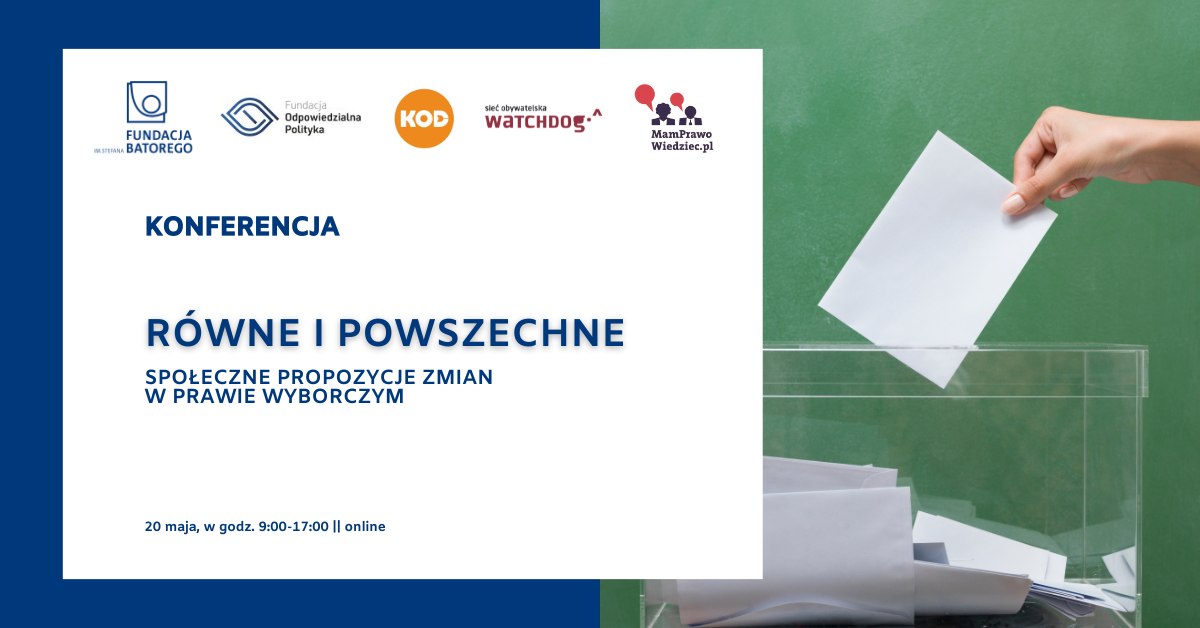 Zapraszamy do śledzenia online współorganizowanej przez nas konferencji “Równe i powszechne. Społeczne propozycje zmian w prawie wyborczym”.