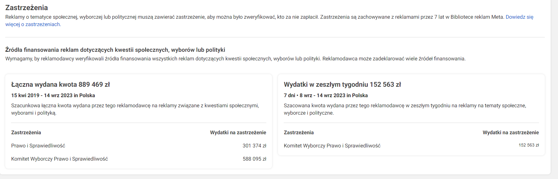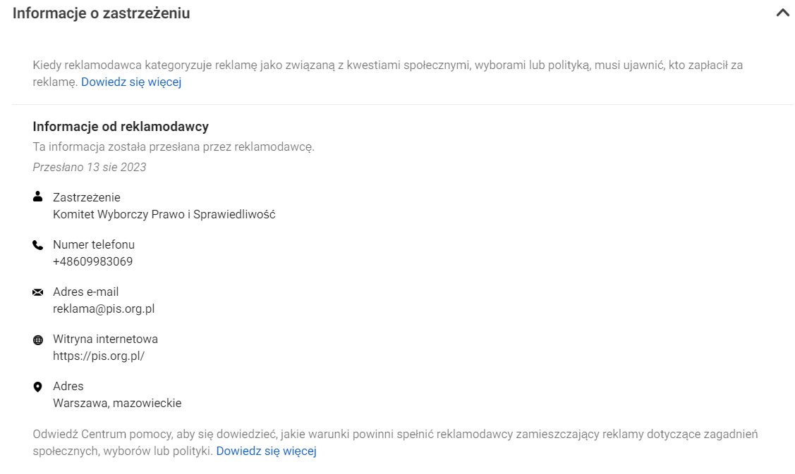 Należące do Mety,Google’a i w pewnym stopniu także X (Twittera) narzędzia pozwalają podejrzeć wydatki i inne szczegóły reklam partii, polityków i komitetów wyborczych. To wciąż mało znane, ale pomocne wsparcie jawności, szczególnie w okresie przedwyborczym. Oczywiście, w kwestii jawności wydatków na reklamę polityczną, nie ma sensu polegać wyłącznie na korporacyjnych rozwiązaniach i wciąż domagać się informacji od polityków, ale na pewno warto korzystać z tego, technologicznego, i dostępnego od ręki, rozwiązania.
