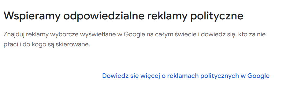 lub klikając poniżej na przycisk „Dowiedz się więcej o reklamach politycznych w Google”,