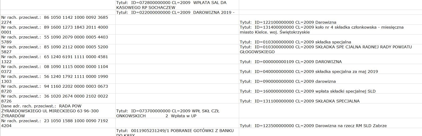 - historii rachunków bankowych partii od 1 stycznia 2019 r. do 31 maja 2019 r. w formie przeszukiwalnej,