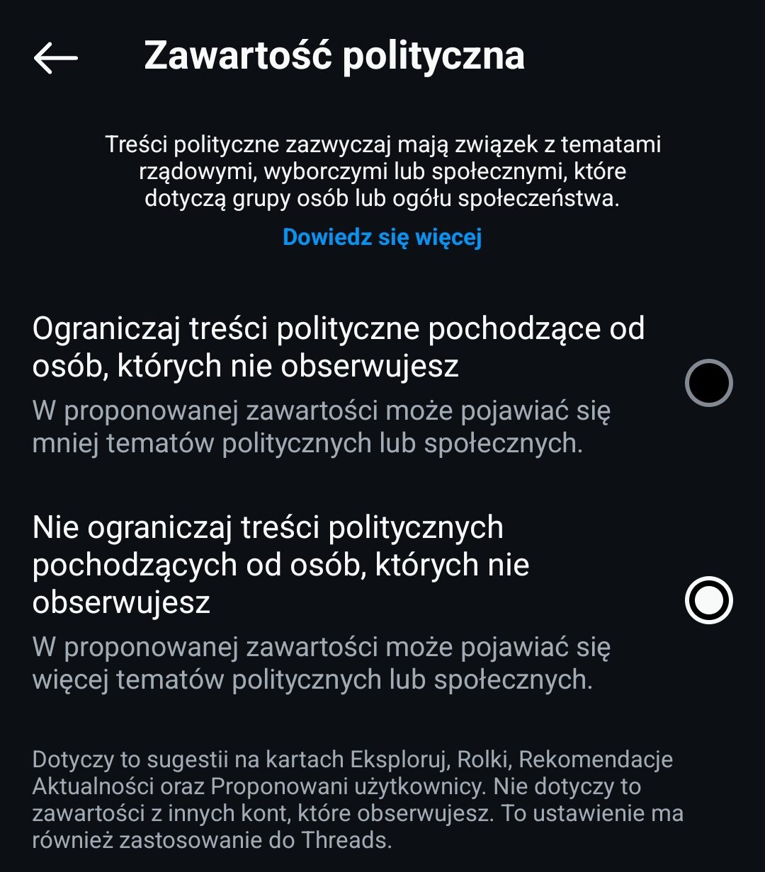 Uwaga! Nawet jeśli obserwujesz nas na Instagramie, zalecamy sprawdzenie ustawień dotyczących widoczności treści politycznych.