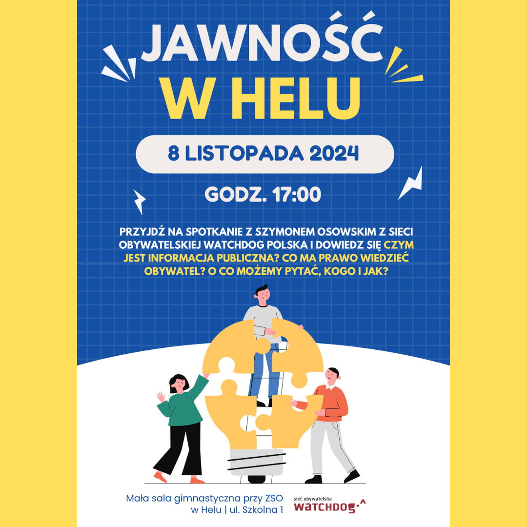 Sieć Obywatelska Watchdog Polska na zaproszenie lokalnych aktywistek i aktywistów zawita już niebawem w Gdyni, Helu i Wejherowie, by z zainteresowanymi porozmawiać o jawności i prawie do informacji. Wszystkie spotkania mają charakter otwarty i odbędą się w godzinach popołudniowych. Zapraszamy!
