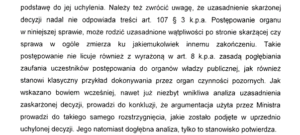 Po raz kolejny złożyliśmy skargę na decyzję do Wojewódzkiego Sądu Administracyjnego, w której podkreślamy: