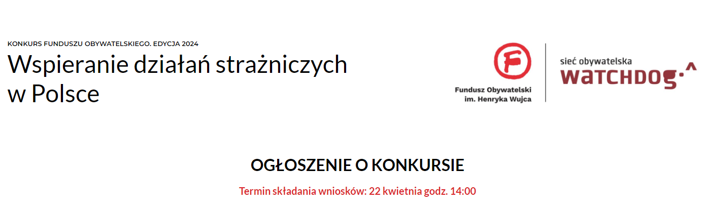 Dzięki Twojemu 1,5% podatku w 2024 roku przekazaliśmy 253 000 zł na wsparcie działań lokalnych inicjatyw strażniczych. Kto i jak skorzysta na utworzonym przez nas w 2022 roku Funduszu Watchdogów? Zachęcamy do składania wniosków dotacyjnych w konkursie strażniczym ogłoszonym przez Fundusz Obywatelski im. Henryka Wujca. Termin składania wniosków: 22 kwietnia godz. 14:00.