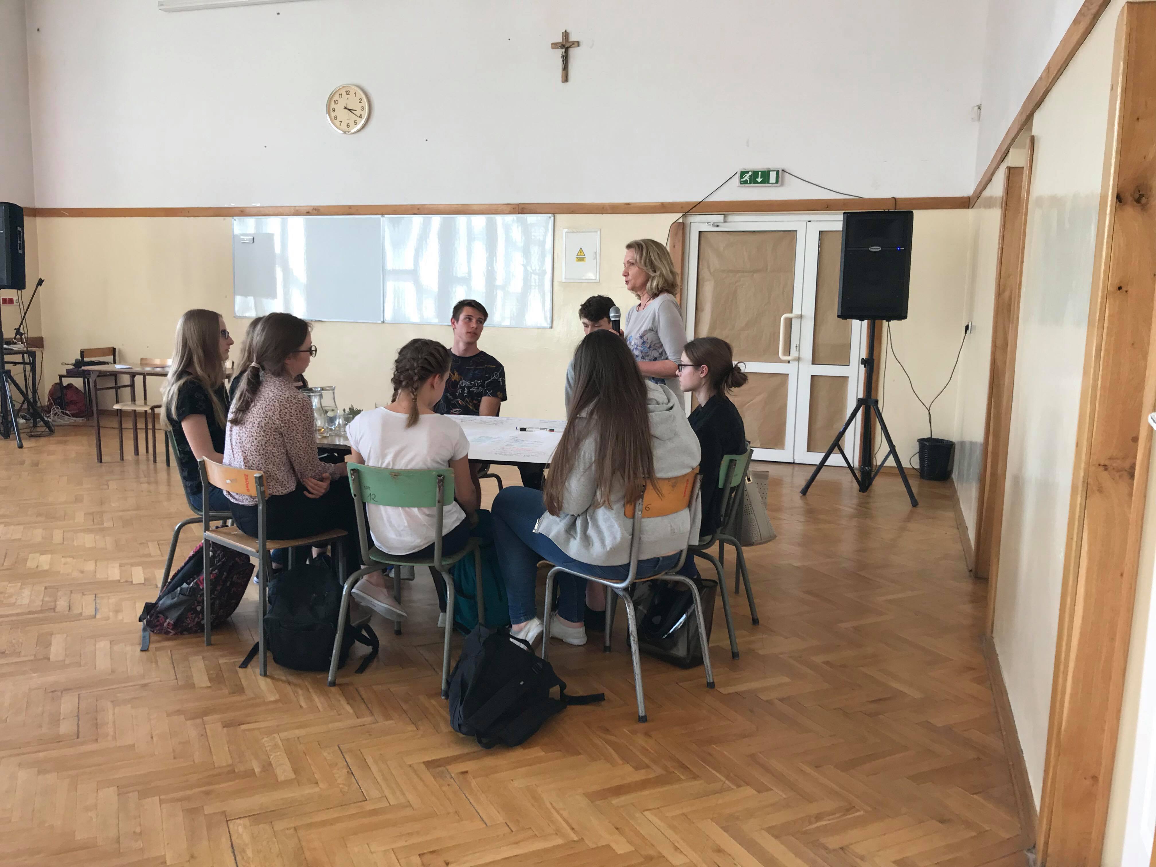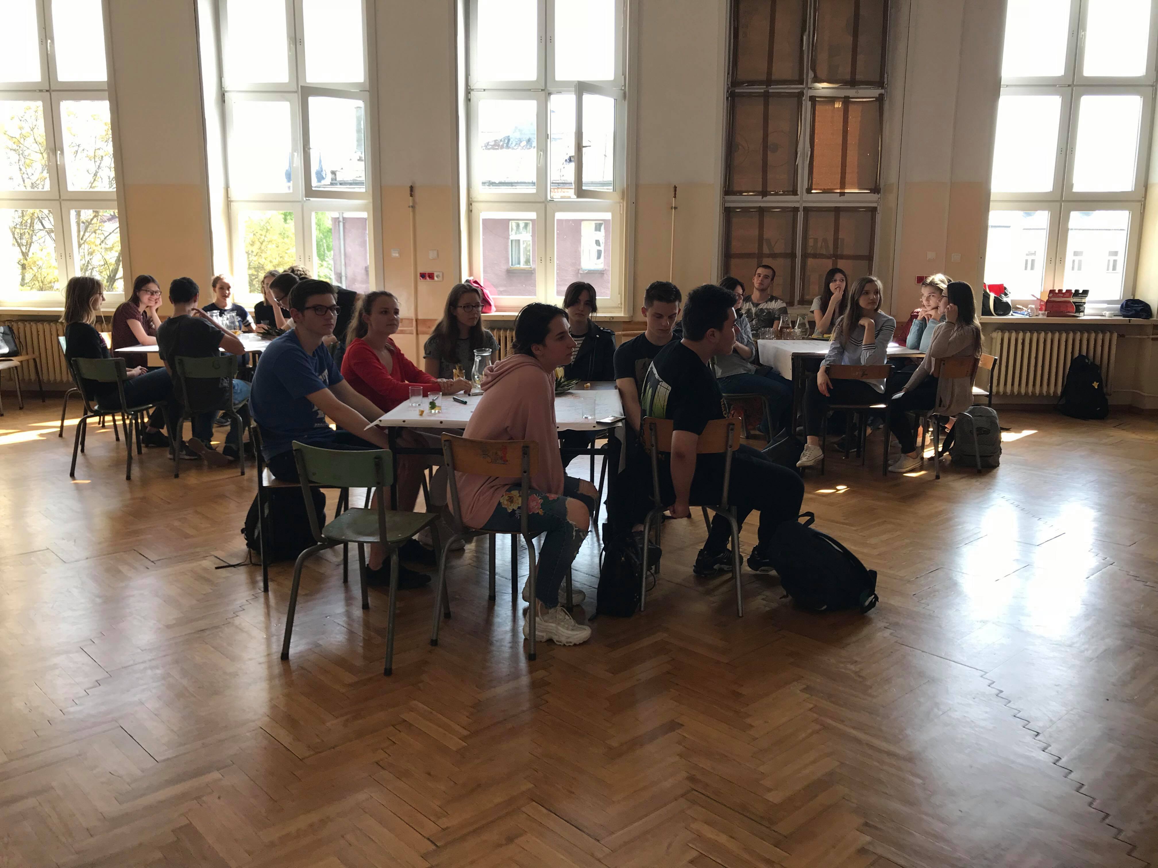 The group we met in Radom (April 23, 2018) had about 40 people – two first classes; biological-chemical and humanistic. The youth we met were seventeen-year-olds. We used a method of the world café. The role of experts were played by Mateusz Wojcieszak from Change Group and from Watchdog Poland, Grażyna Kopińska from Batory Foundation, Iwona Grześkiewicz from the Radom’s high school named after Jan Kochanowski, Roksana Maślankiewicz and Katarzyna Batko-Tołuć from Watchdog Poland.