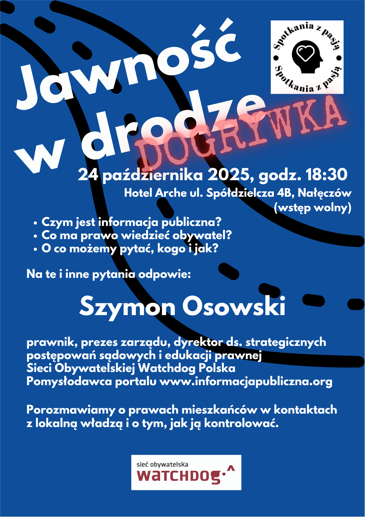 „Jawność w drodze” to seria otwartych, bezpłatnych spotkań organizowanych przez Sieć Obywatelską Watchdog Polska oraz lokalne organizacje i mieszkańców.